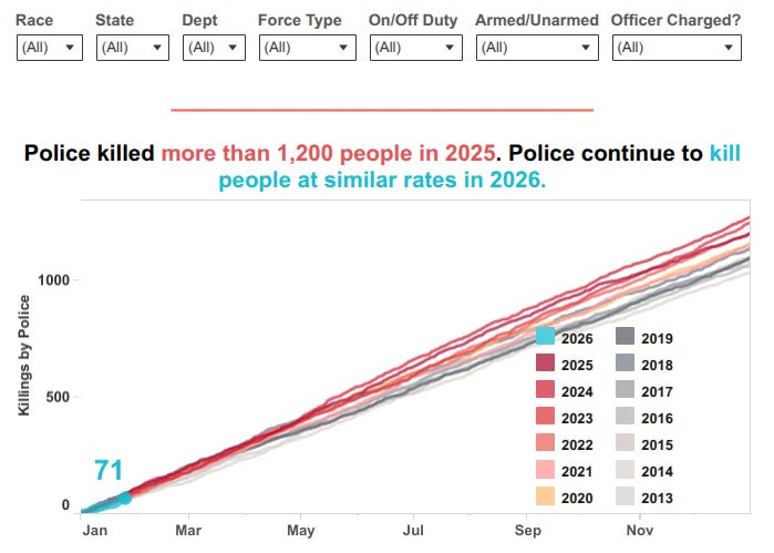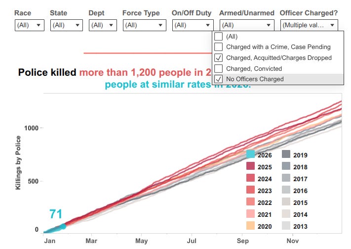 You could argue that these are ICE killings, and that ICE — blown up under Trump, almost not trained at all, and Proud Boys-adjacent — hires a “new” kind of cop, one not like the rest.
