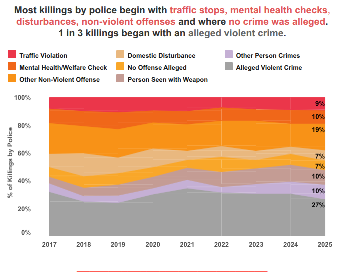 Some of these shootings are justified — “good kills” in cop speak. But two-thirds of the killings start with no crime at all, or with a non-violent offense.