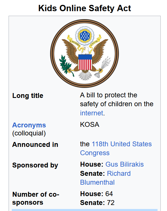 Notice the sponsors. More information here and here. But this bill, which some critics say threatens to deanonymize the Internet via age verification, isn’t my main point.