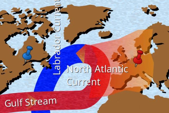 With that, let’s look at one system under threat, the system of oceanic Atlantic currents that keeps northern Europe from freezing like Canada.